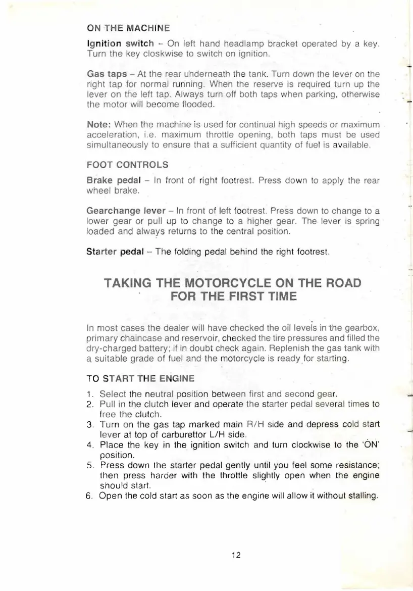 right tap for normal running. When the reserve is required turn up the