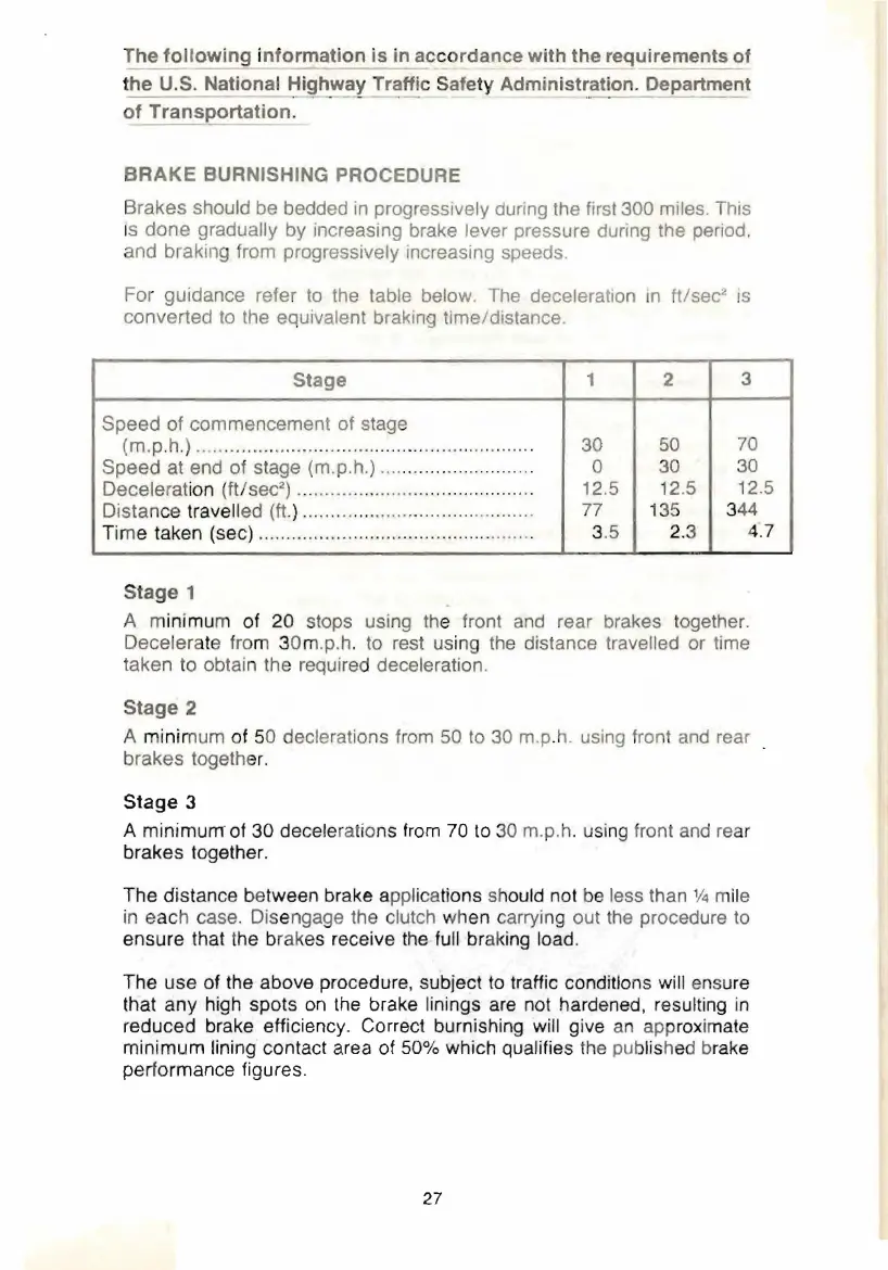 BRAKE BURNISHING PROCEDURE