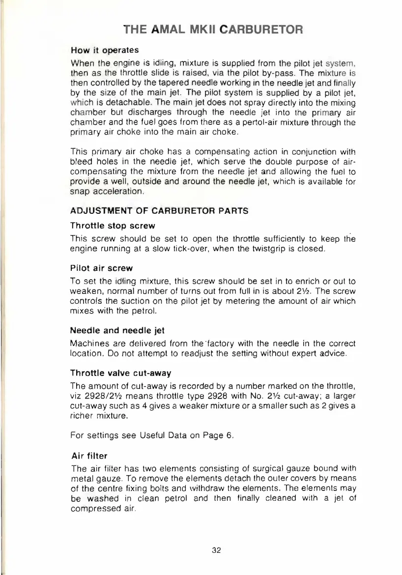 When the engine i,s idling, mixture is supplied from the pilot jet system,
