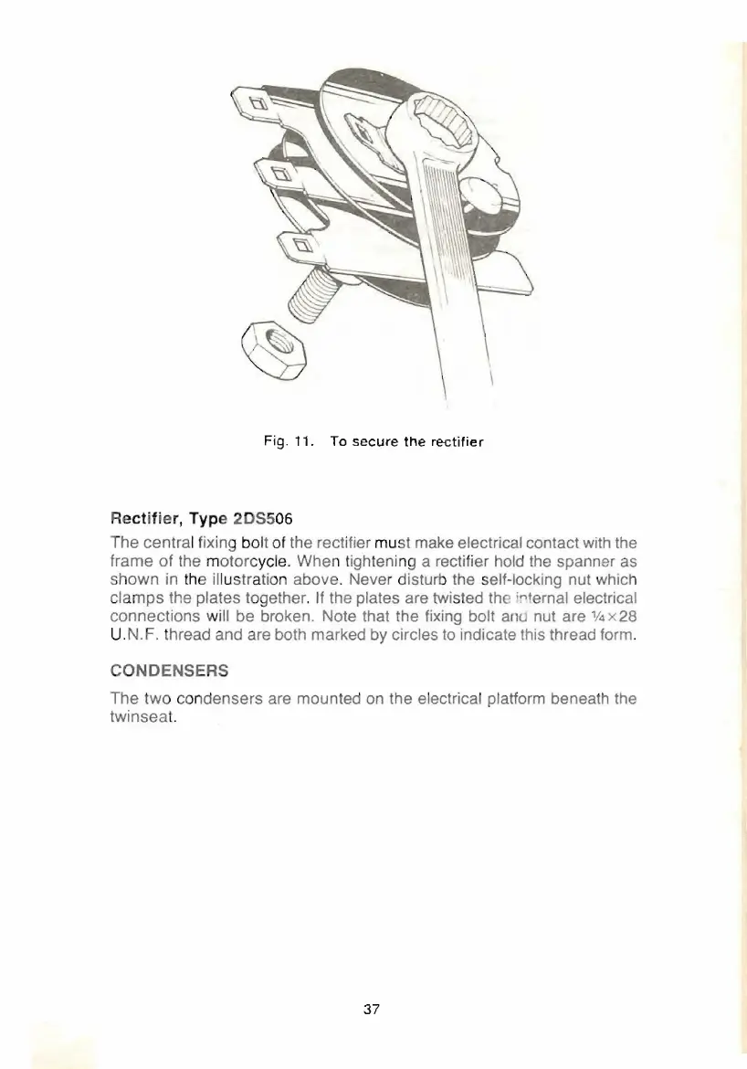 The central fixing bolt of the rectifier must make electrical contact with the