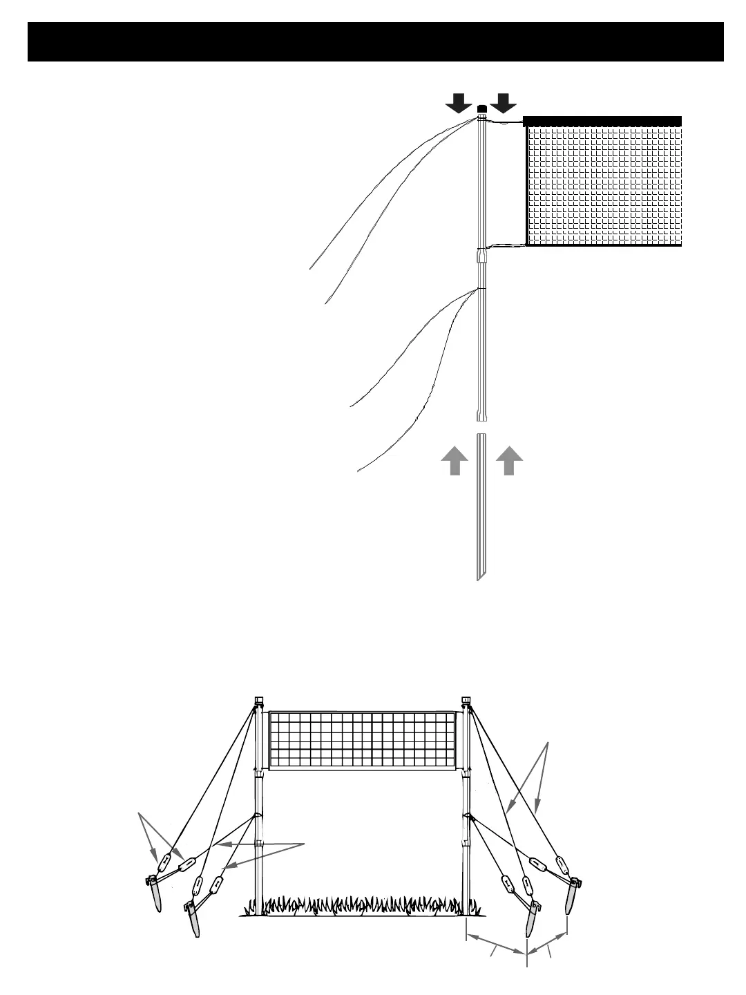 Stretch assembled net and poles across playing area until net is tight. Press pole into