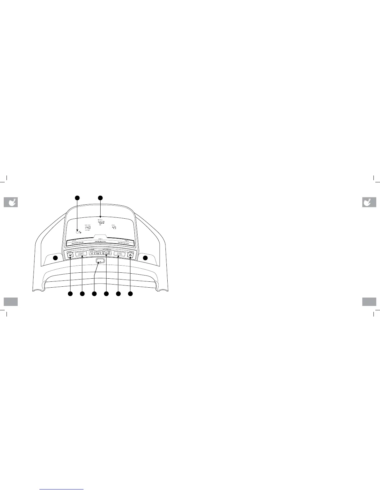 A) ÉCRAN D’AFFICHAGE : Vitesse, durée, fréquence cardiaque, distance et calories.