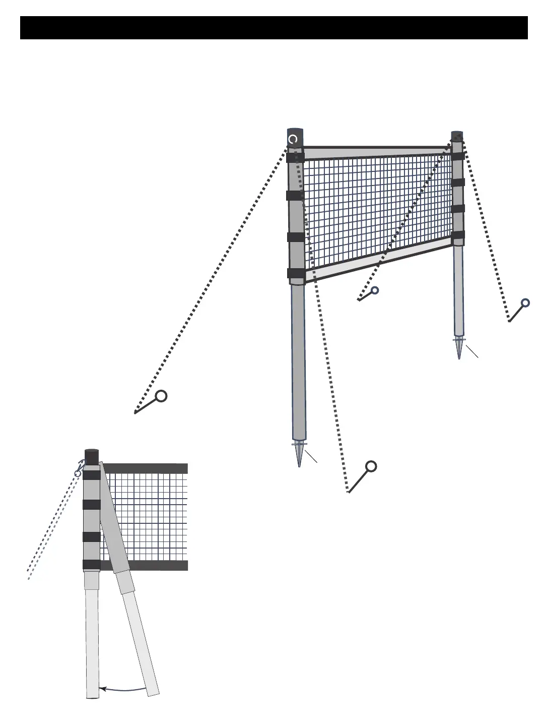 that the top of the net meets the top of each pole. Attach the guyline systems to the