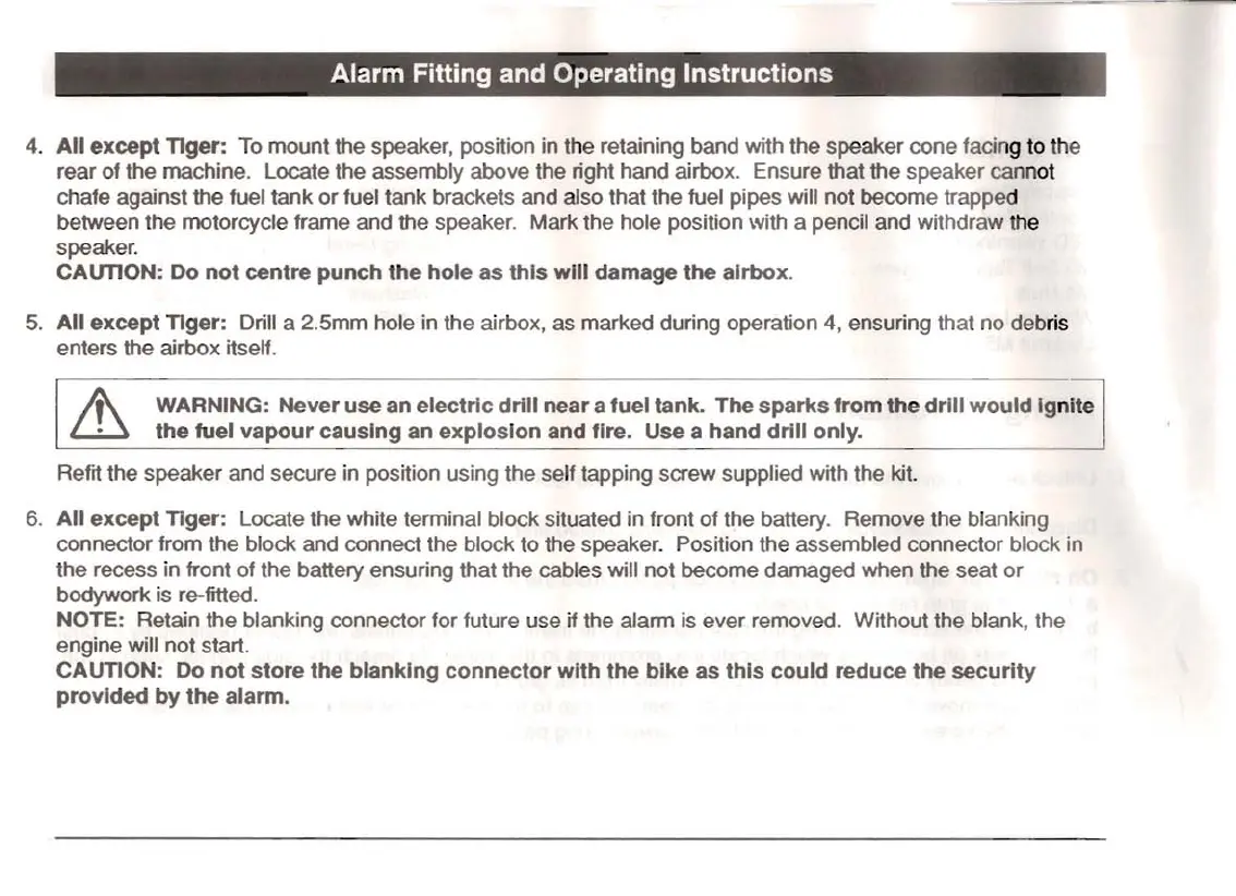 Alarm Fitting and Operating Instructions