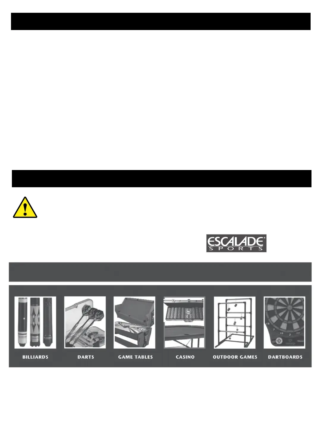 warranty, nor is wear or damage due to improper use of the Escalade Sports game. This will