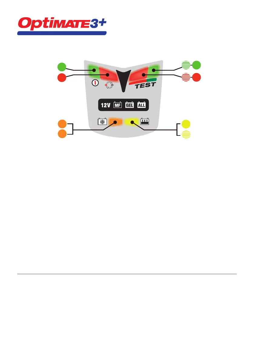 3.2 RECOVERY - For neglected or very fl at batteries, LED #3 remains on and indicates steadily.