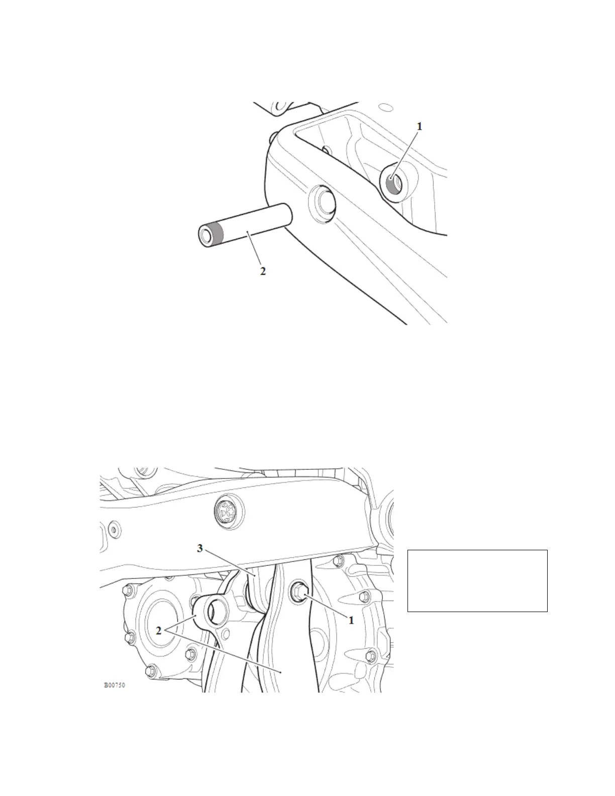 11. Lift the swinging arm, hold the flanged lock nut and tighten the bolt to 48 Nm.