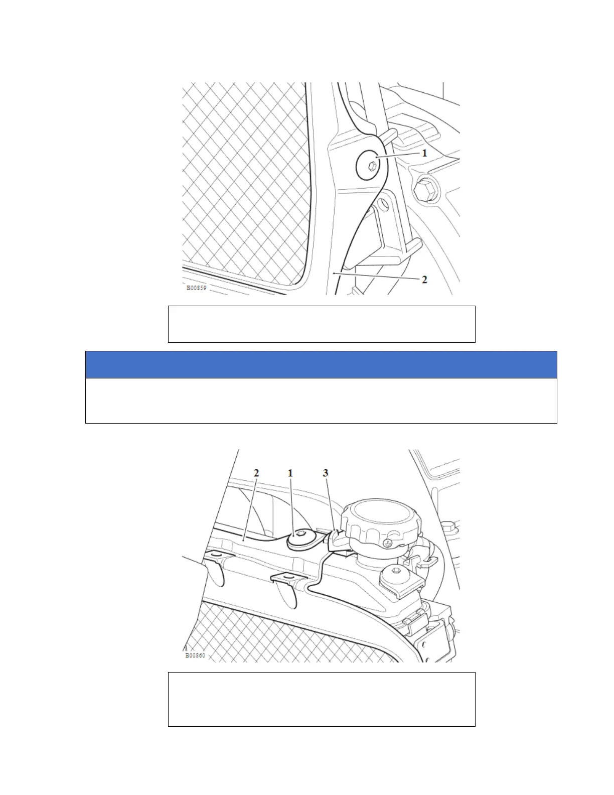 The left hand upper fixing for the radiator grille also secures the bracket for the