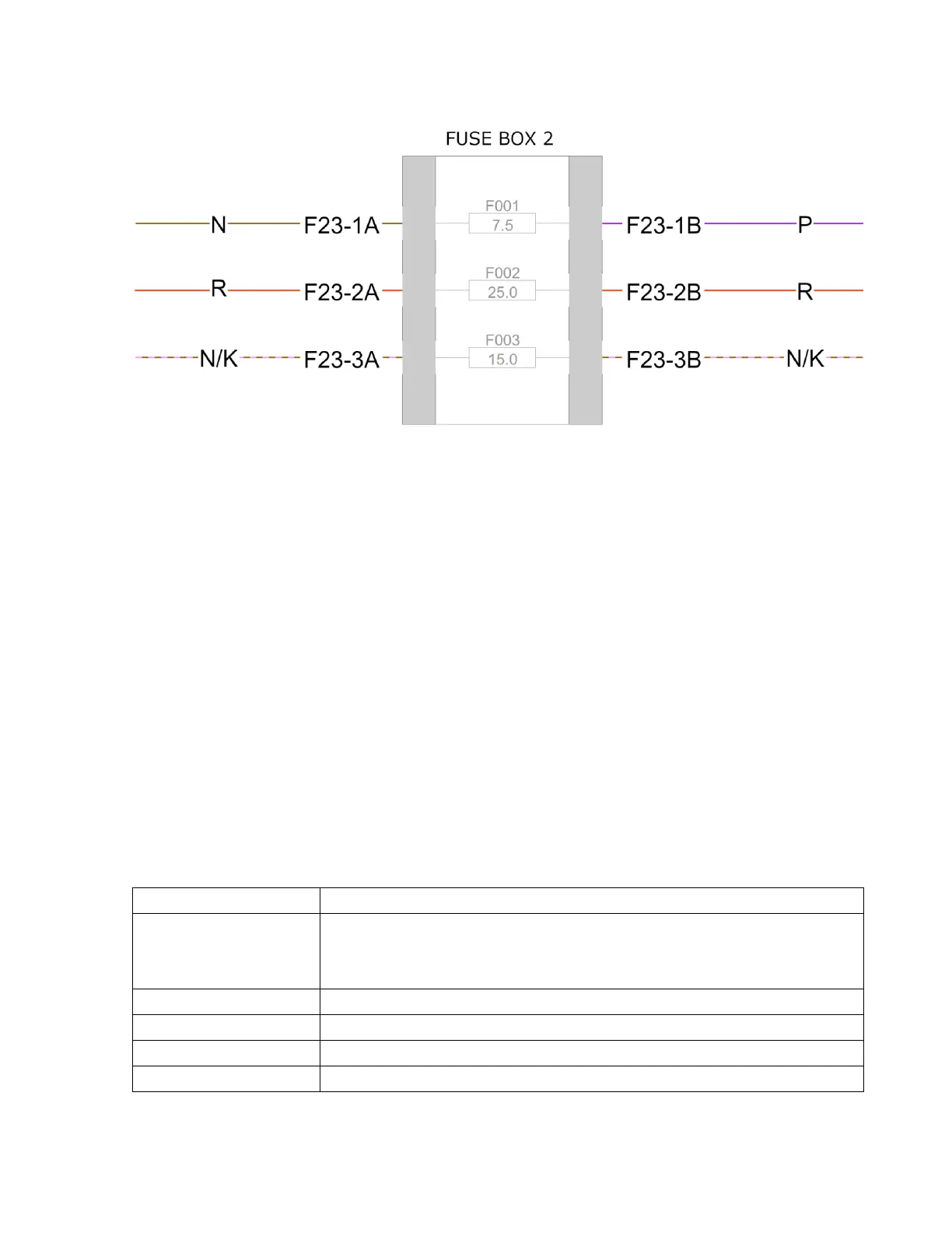 • A fuse box, terminal number and terminal block reference - located on each wire