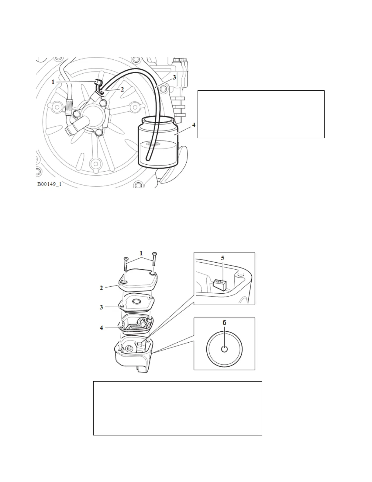 9. Remove the two fixings for the reservoir cap.