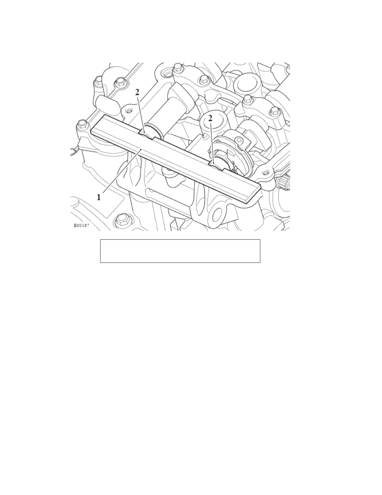 6. Insert service tool T3880502 into the camshaft slots. Make sure the tool is centrally