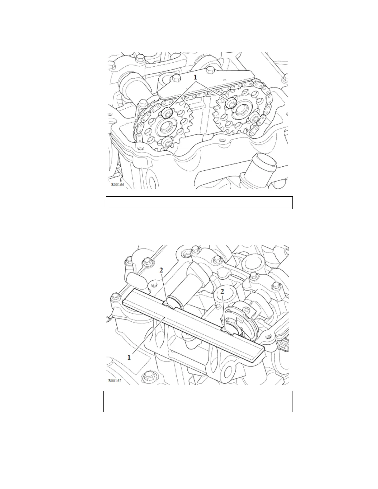 21. Tighten the two accessible camshaft sprocket bolts to 16 Nm.