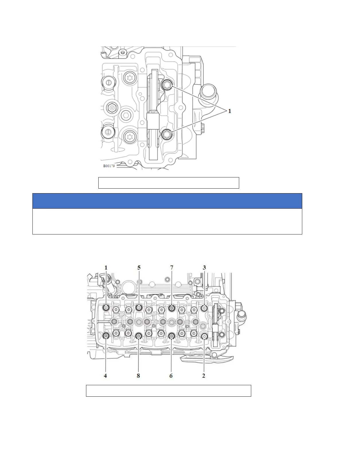 Two of the cylinder head bolts are to be used with service tool T3880518 to secure the