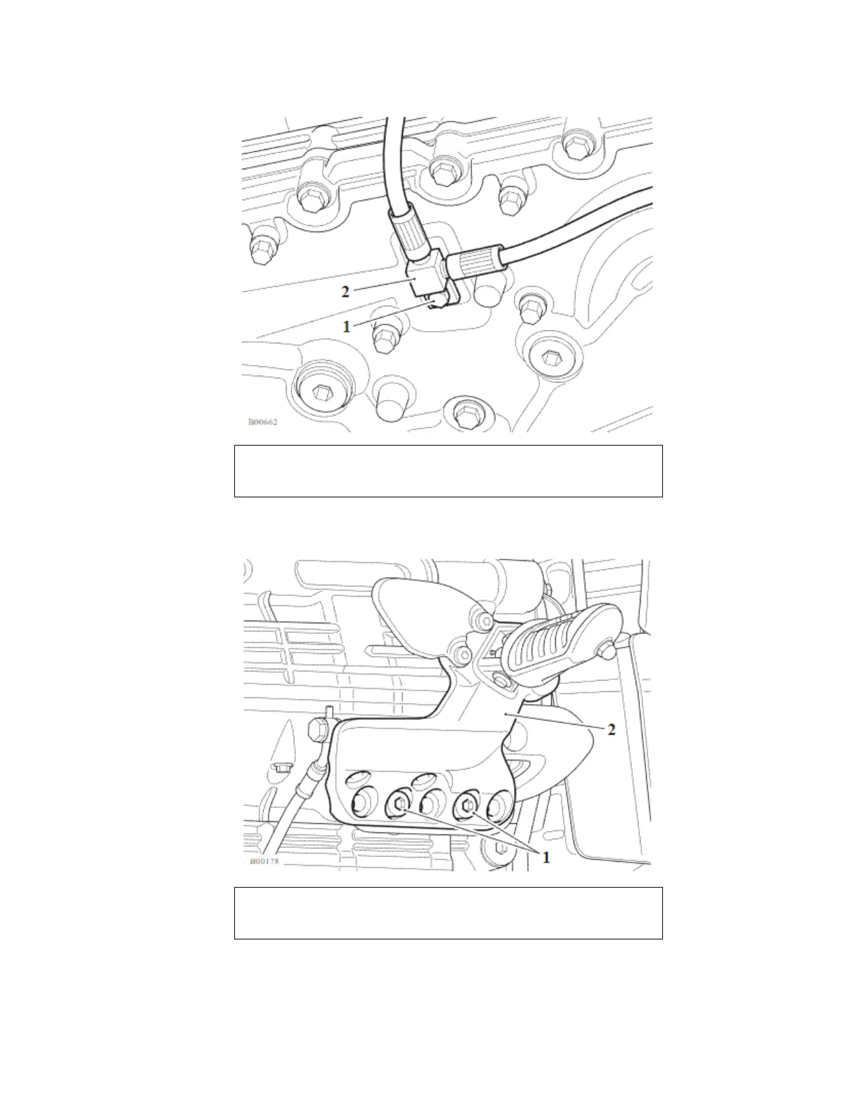 10. Release the fixings and remove the rider right hand control plate from the engine.