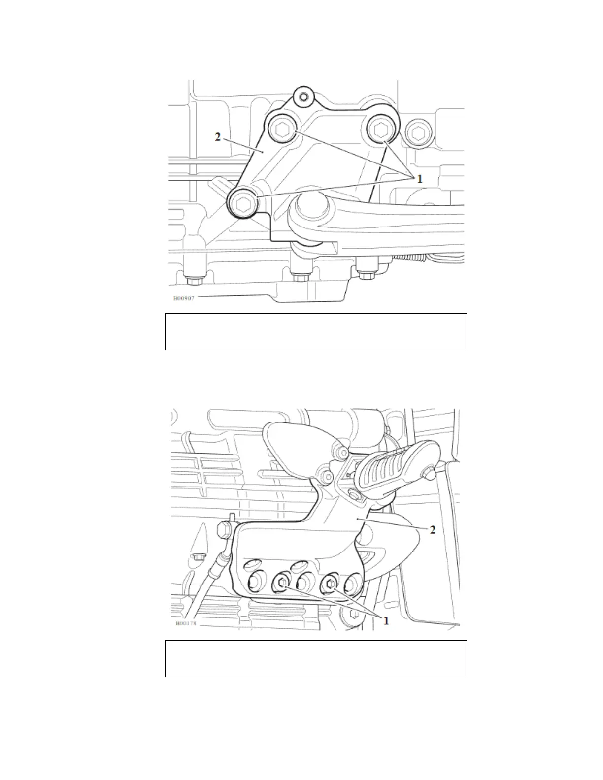 58. Fit the rider right hand control plate to the engine and tighten the fixings to 25 Nm.