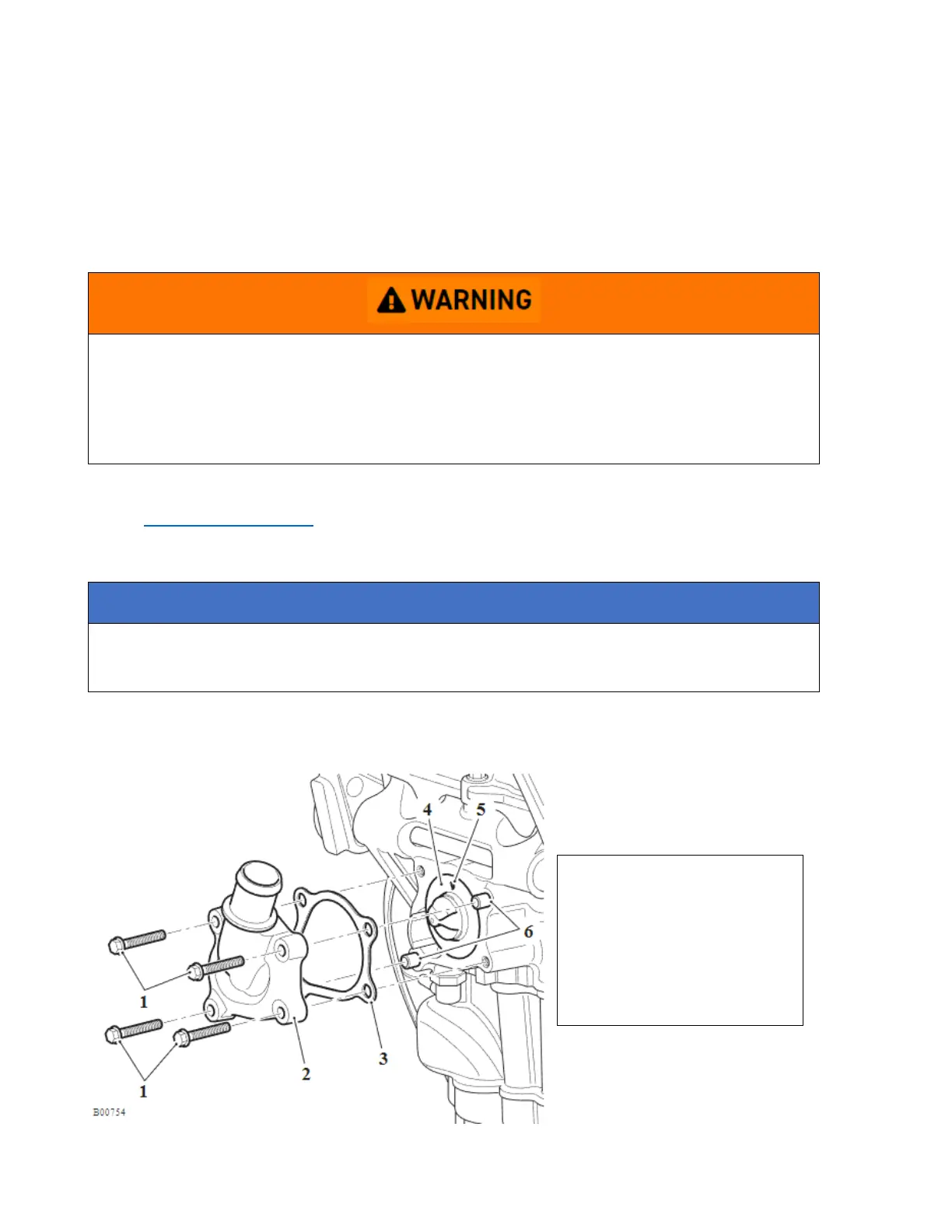 1. Release the fixings and remove the thermostat cover. Discard the gasket.