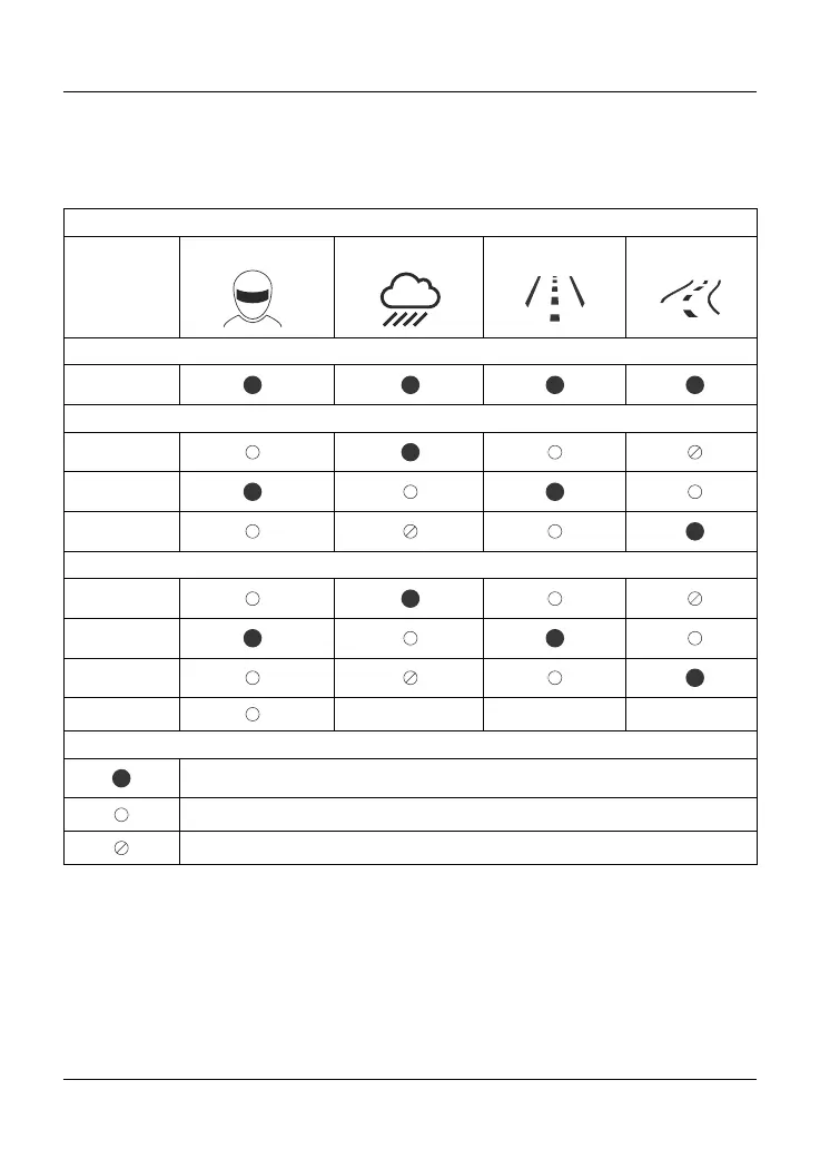 to the following table for the ABS, MAP and TC options available for each riding