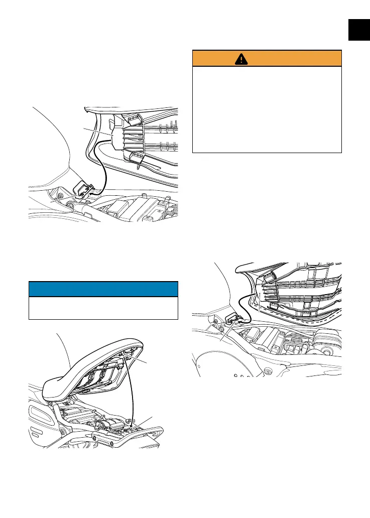 ▼ Engage the hook at the front of the