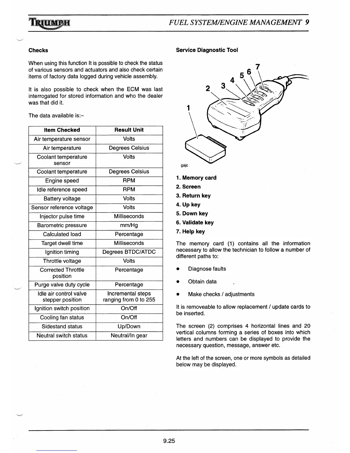 of various sensors and actuators and also check certain