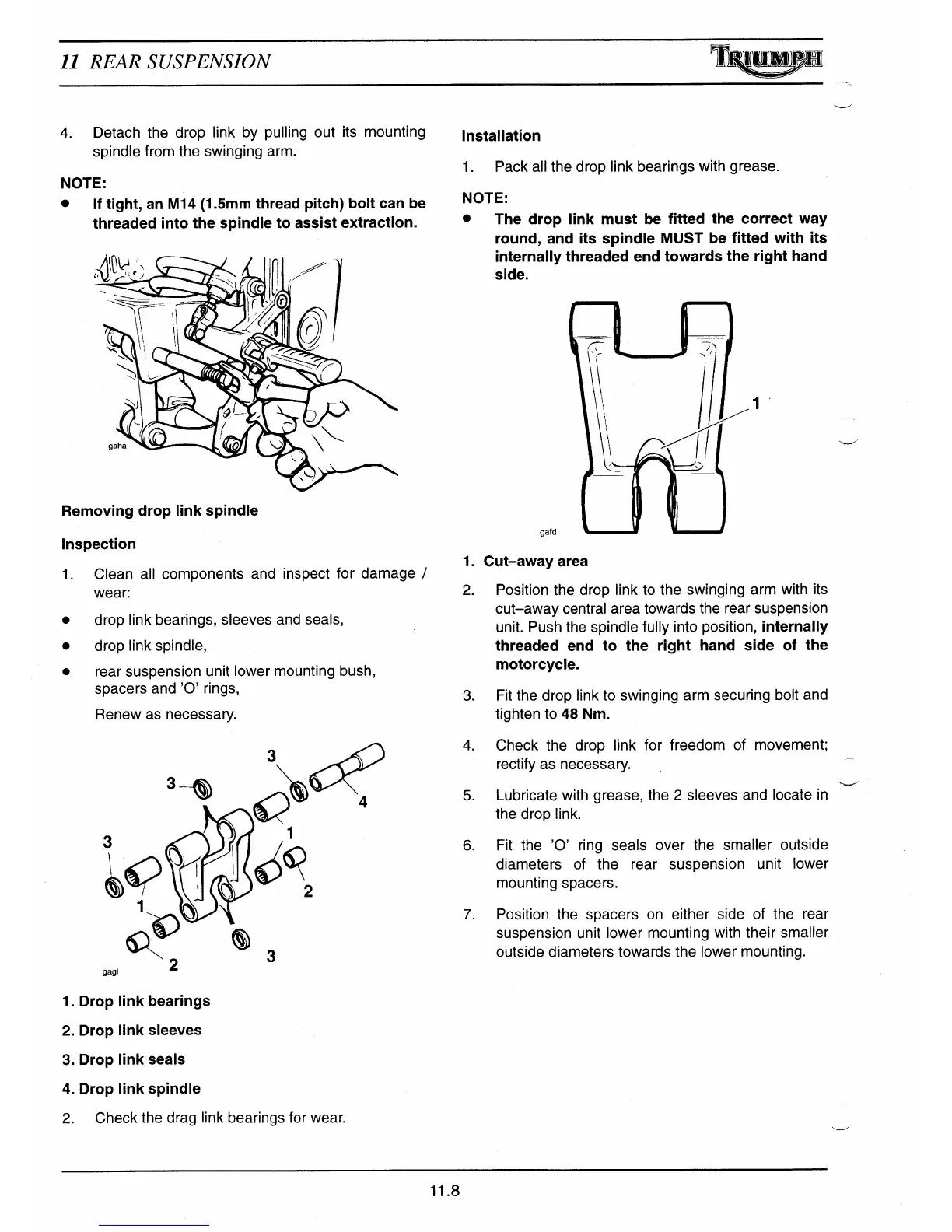 Fit the drop link to swinging arm securing bolt and