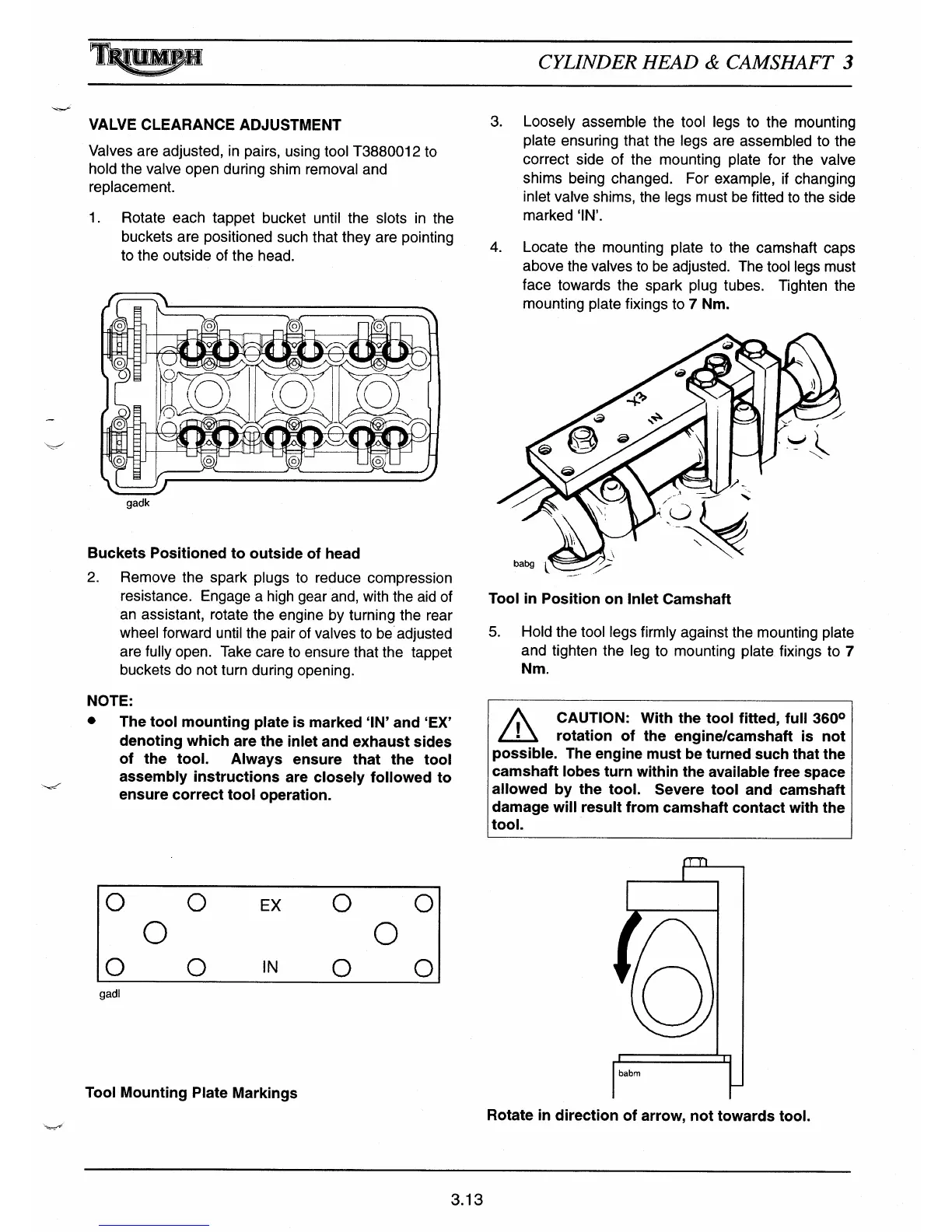 Valves are adjusted, in pairs, using tool T3880012 to
