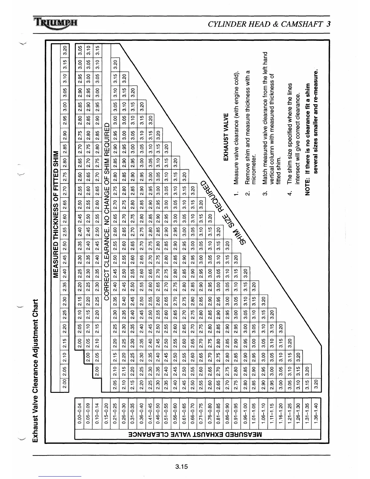 Triumph SPEED TRIPLE 955cc - Exhaust Valve Clearance Adjustment Chart