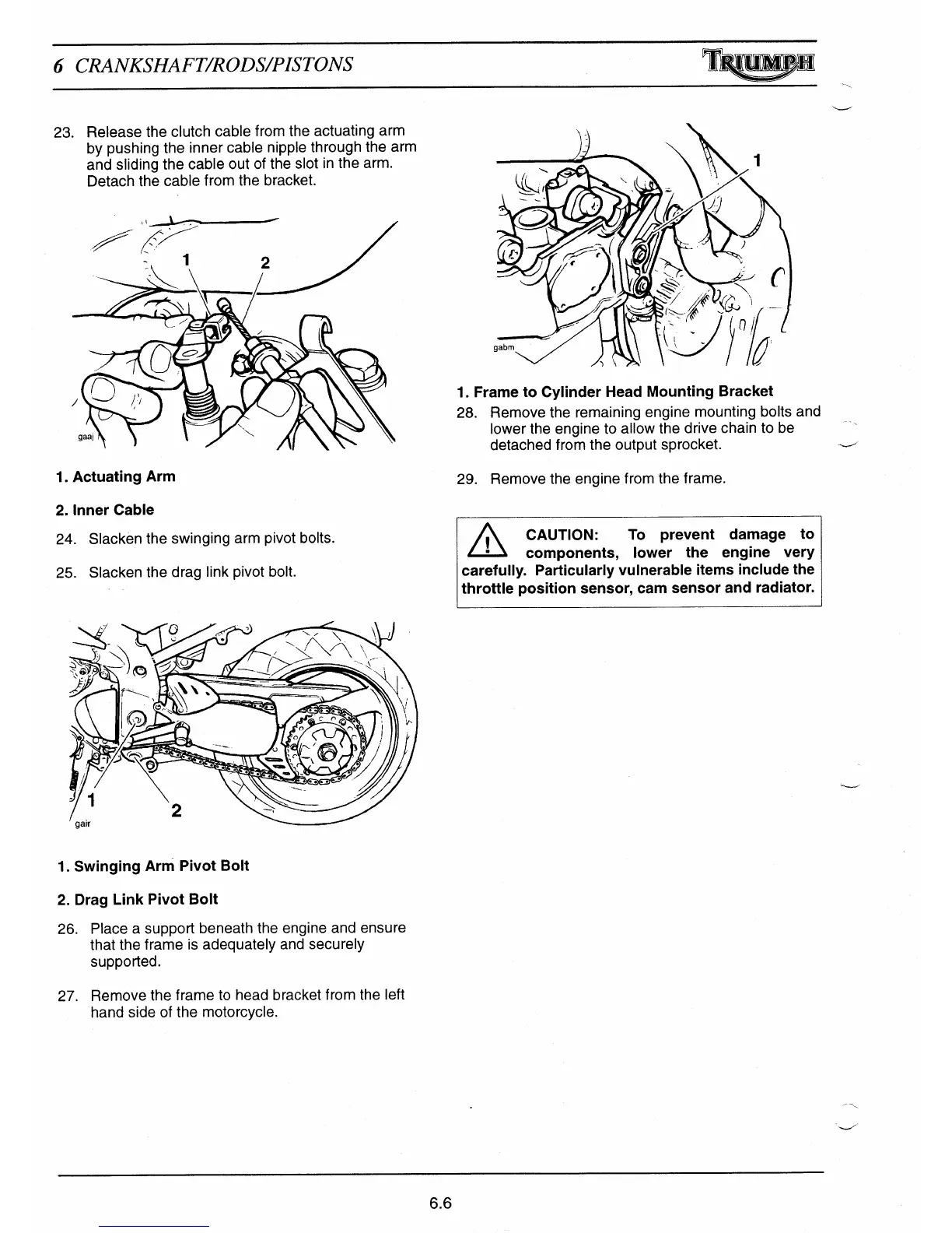 23. Release the clutch cable from the actuating arm