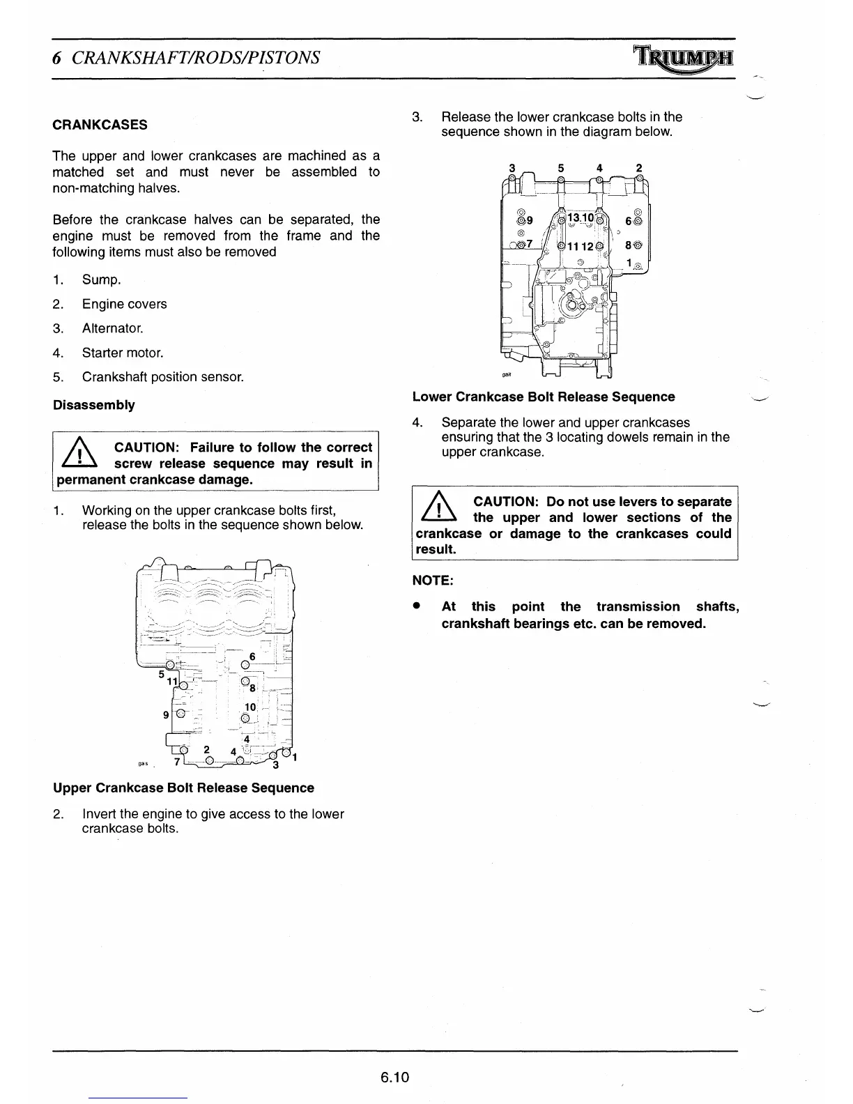 Lower Crankcase Bolt Release Sequence