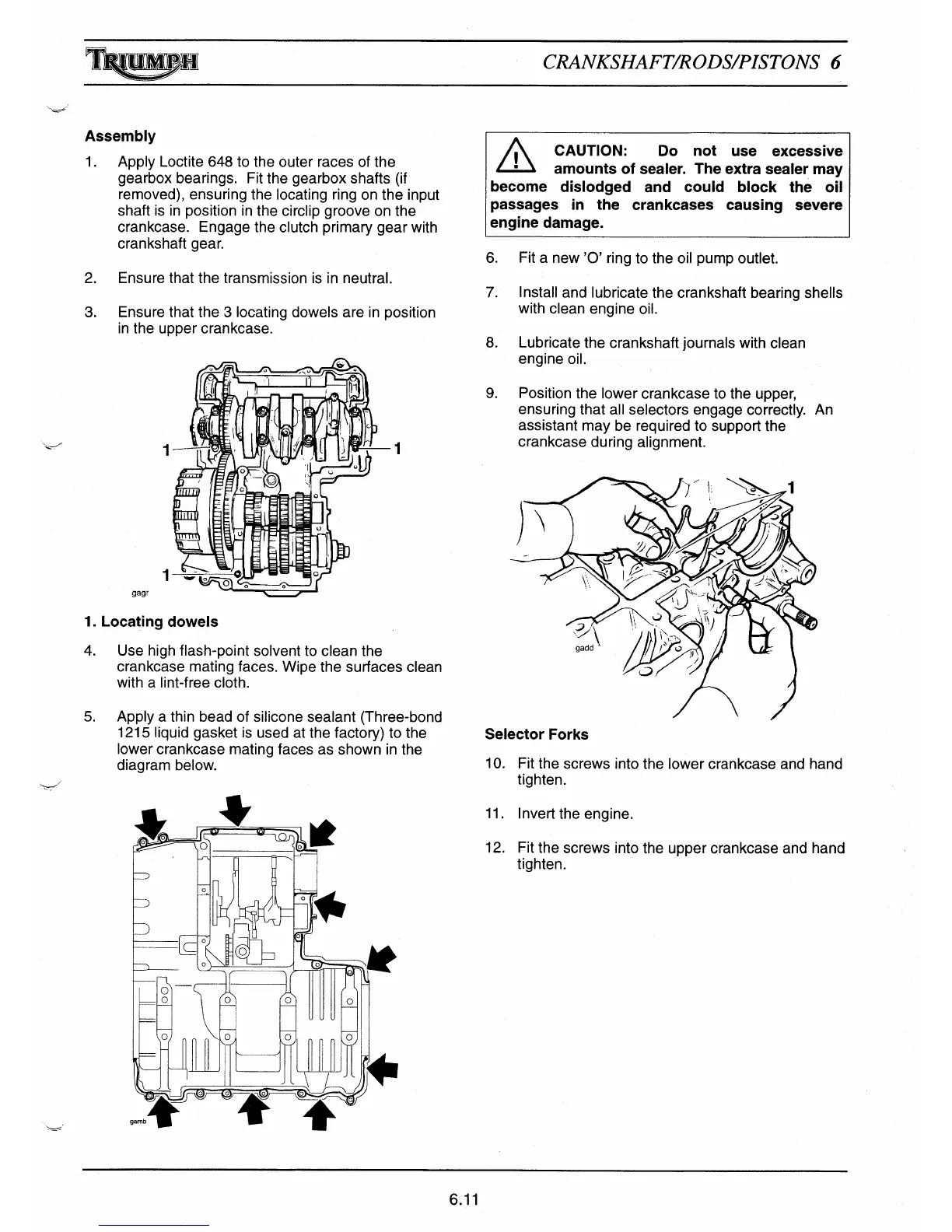 crankcase mating faces. Wipe the surfaces clean