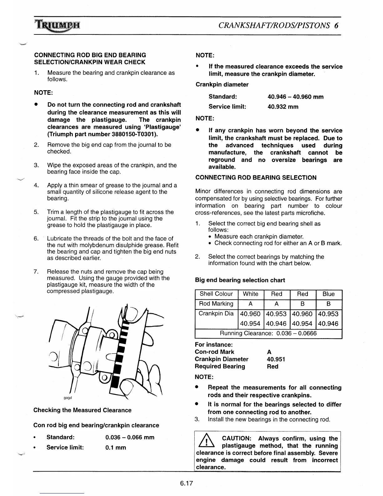 Con rod big end bearing/crankpin clearance
