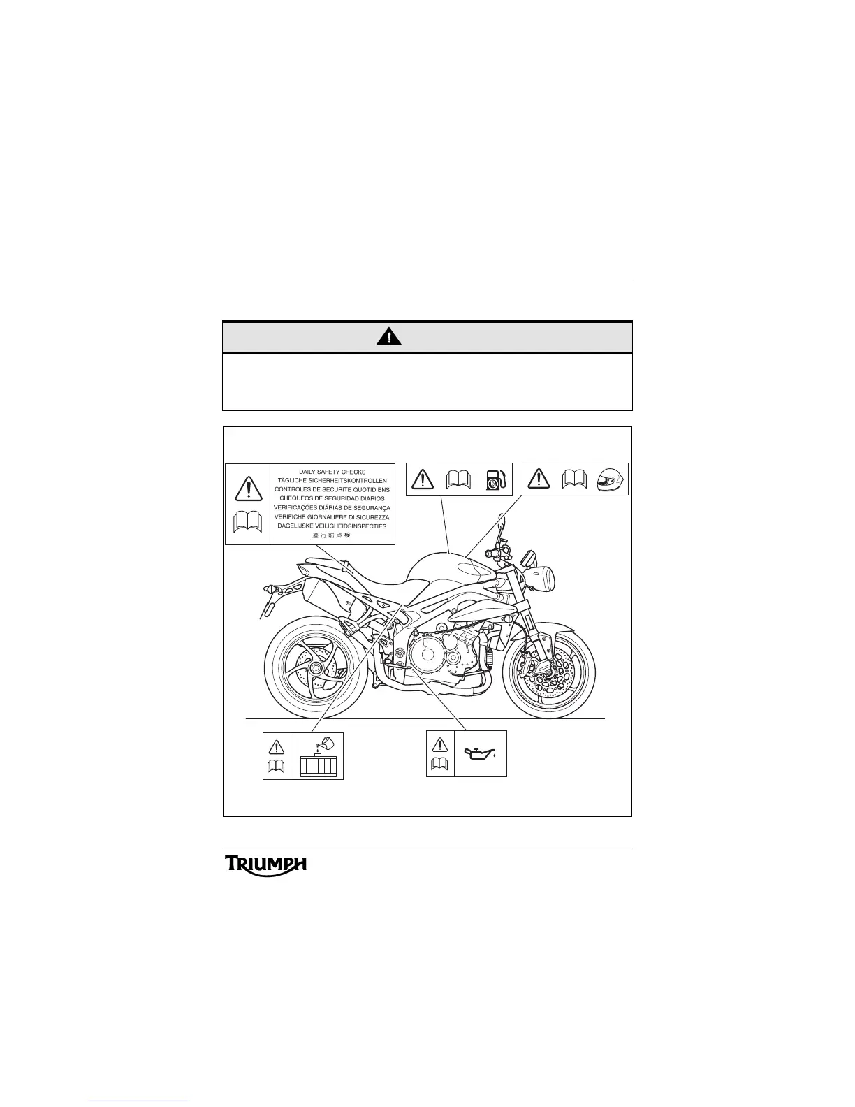 All warning labels and decals, with the exception of the Breaking-in label, are fitted to the