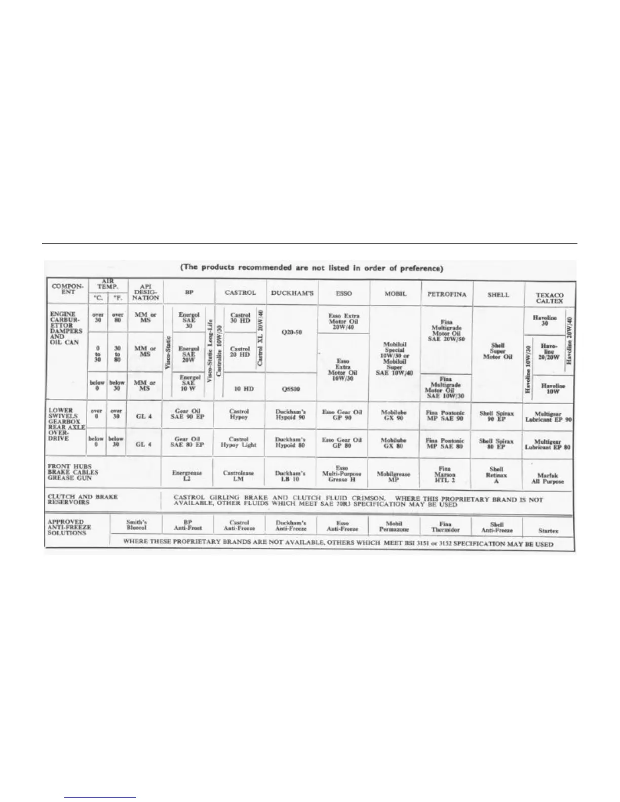 Triumph Spitfire MK3 - Recommended Lubricants (Overseas) - Anti Freeze Solutions
