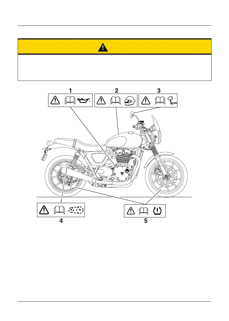 All warning labels and decals, with the exception of the Running‑in label, are fitted