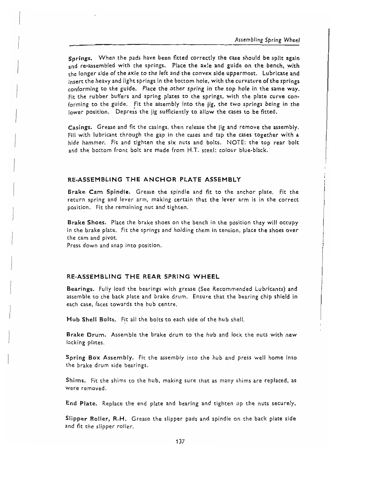in the brake plate. Fit the springs and holding them in tension, place the shoes over