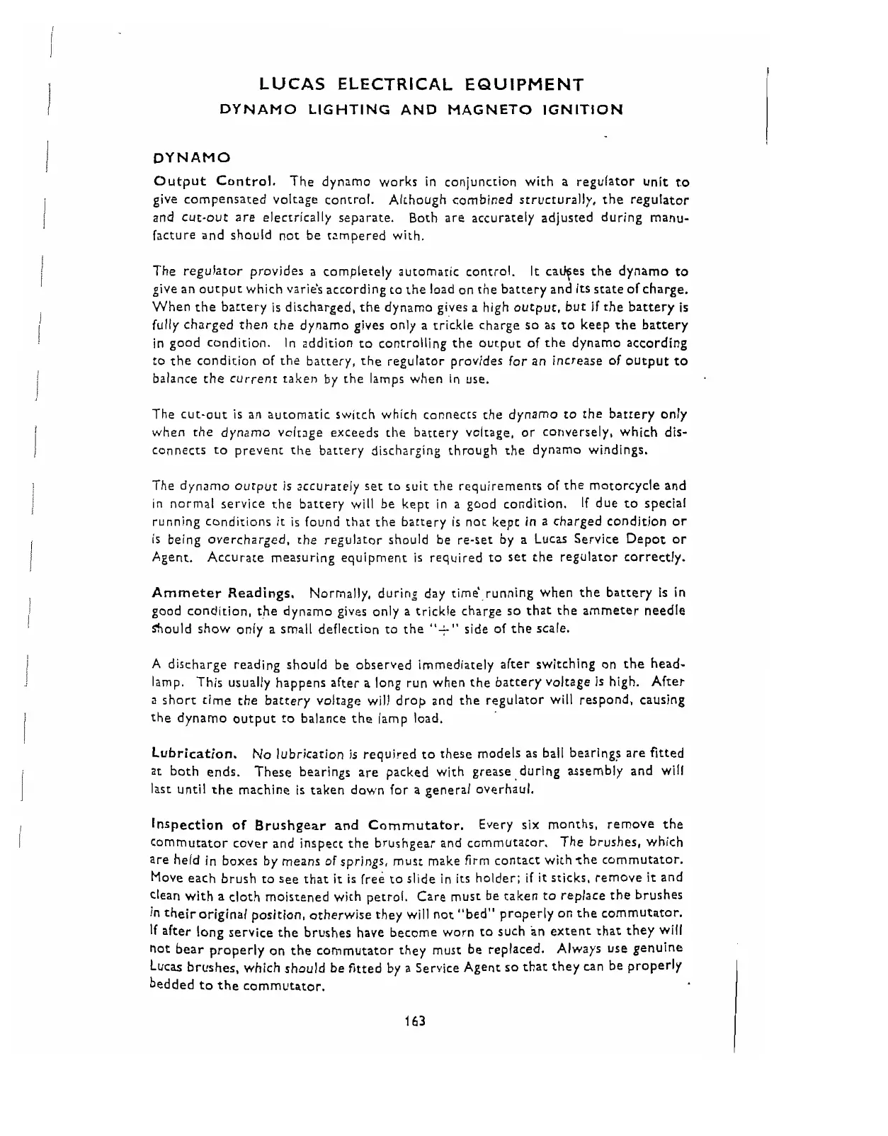 good condition, the dynamo gives only a trickle charge so that the ammeter needle