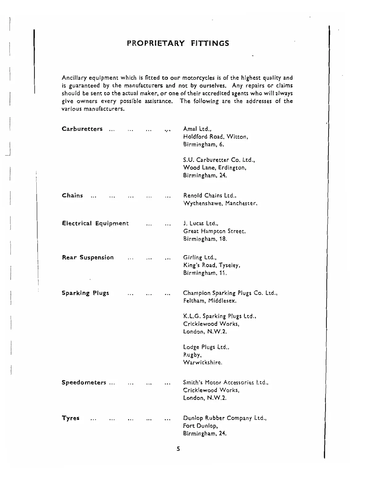 Triumph THUNDERBIRD 1950 - Proprietary Fittings