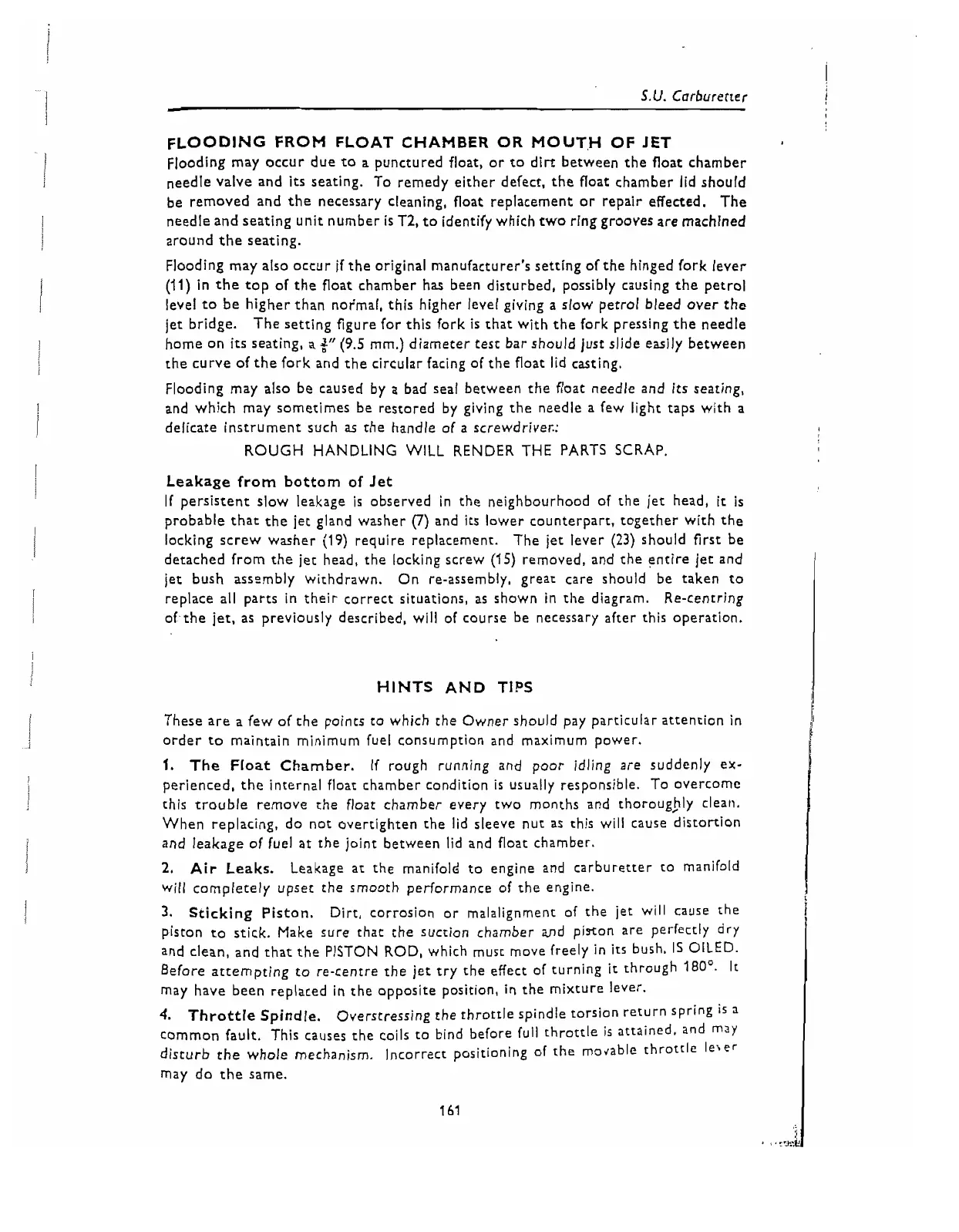 Triumph THUNDERBIRD 1951 - Flooding from Float Chamber or Mouth of Jet; Leakage from Bottom of Jet; Hints and Tips; The Float Chamber