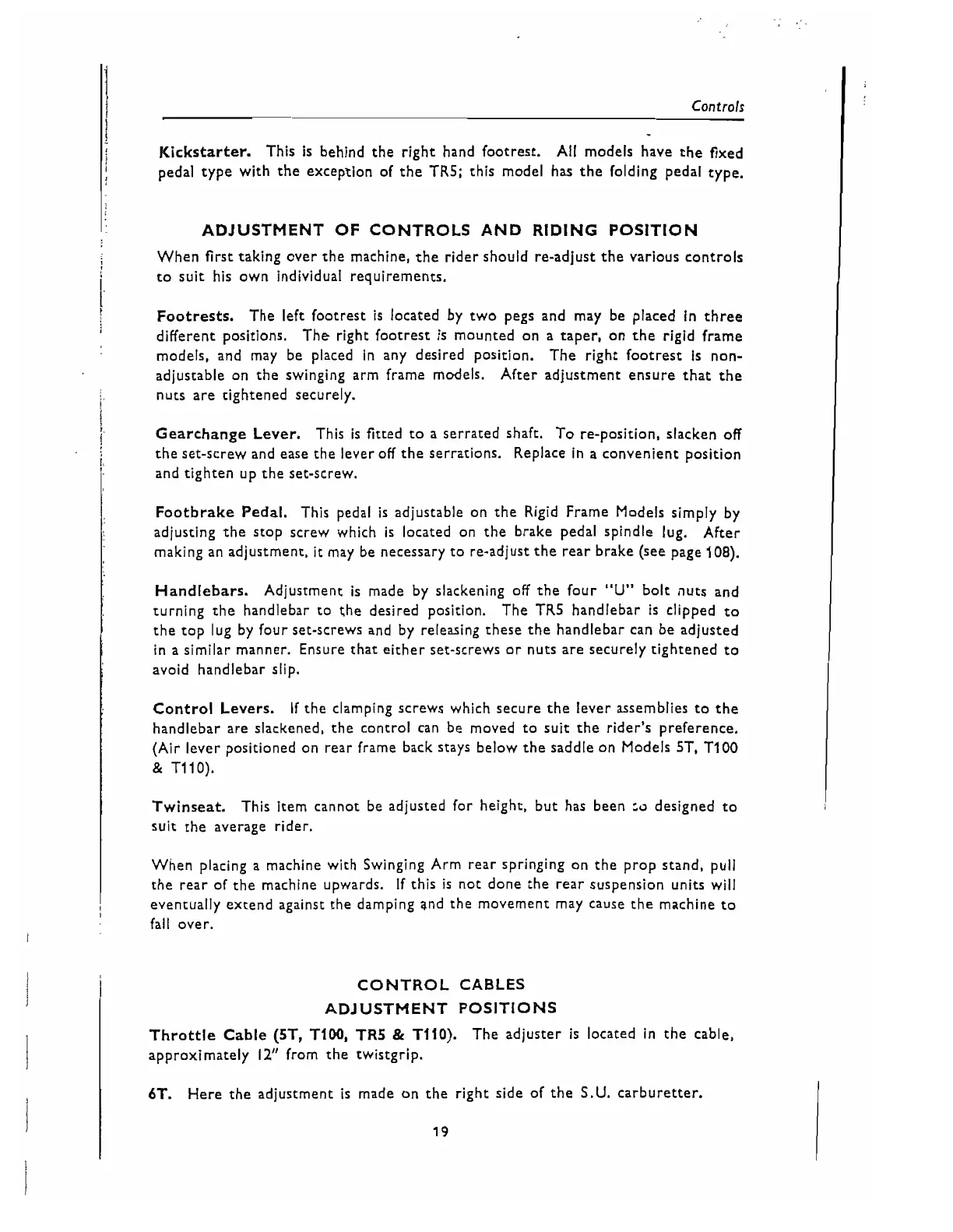 handlebar are slackened, the control can be moved to suit the rider's preference.