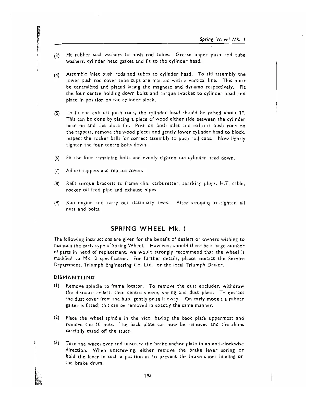 Department. Triumph Engineering Co. Ltd., or the local Triumph Dea:er.