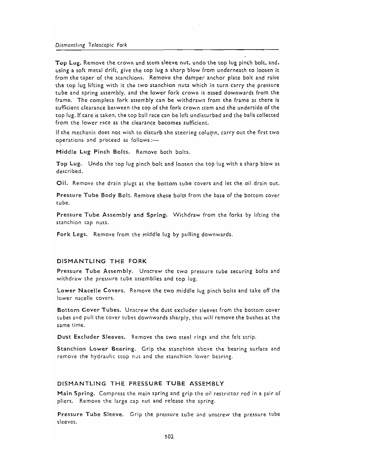 Pressure Tube Assembly and Spring. Withdraw from the forks by