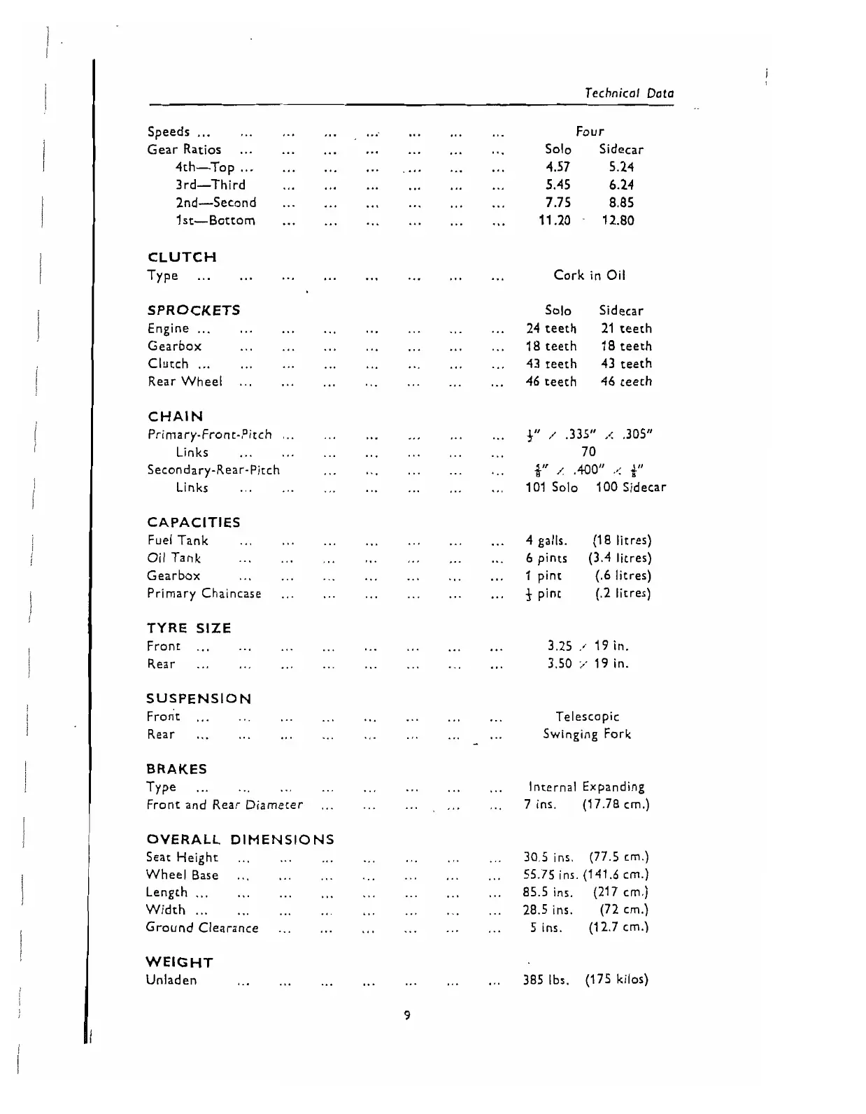 Triumph THUNDERBIRD 1953 - Clutch; Sprockets; Chain