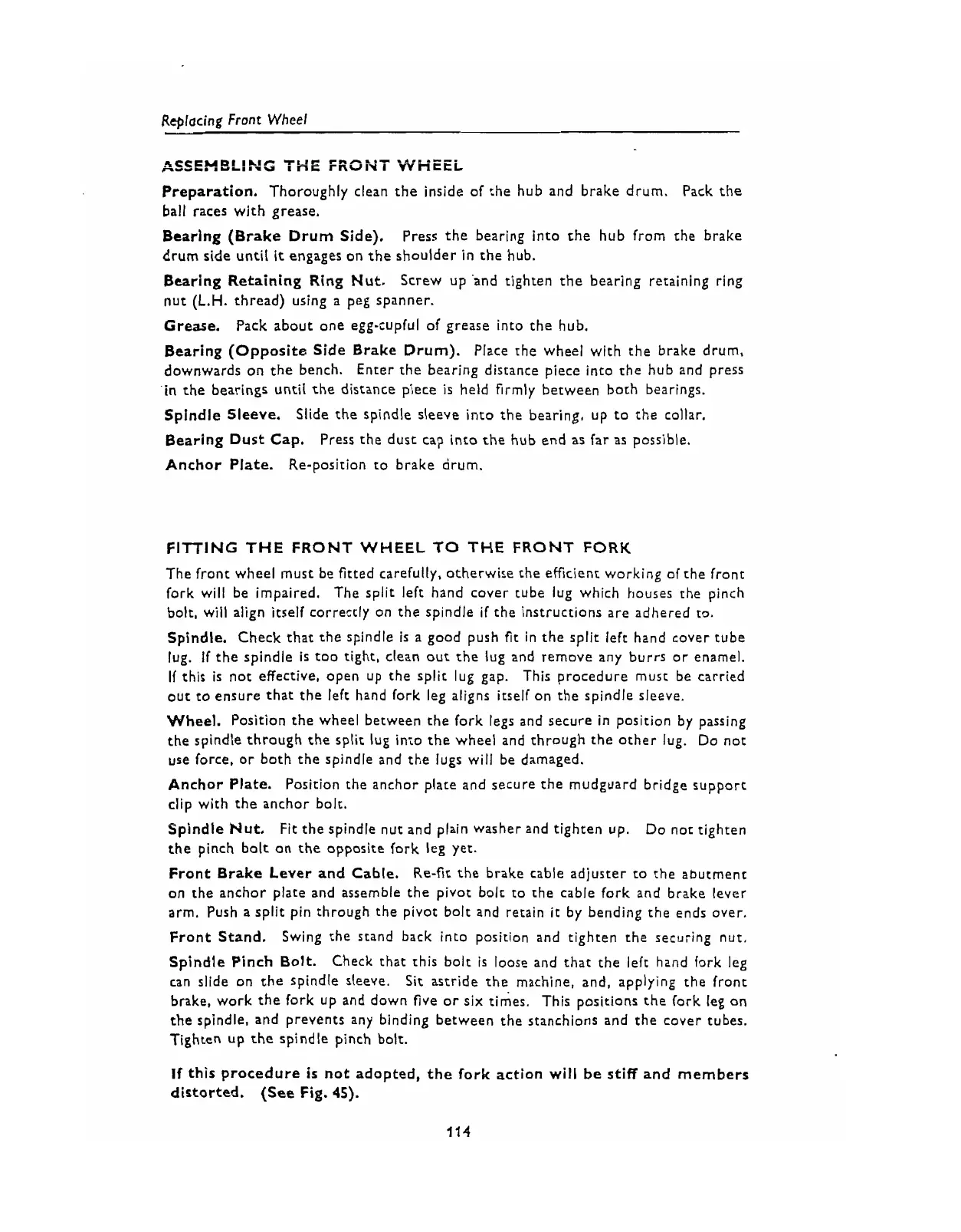 Triumph THUNDERBIRD 1953 - Assembling the Front Wheel; Fitting the Front Wheel to the Front Fork; Spindle; Anchor Plate