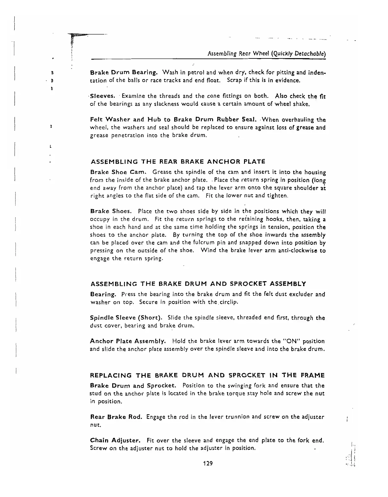 Rear Brake Rod. Engage the rod in the lever trunnion and screw on the adjuster