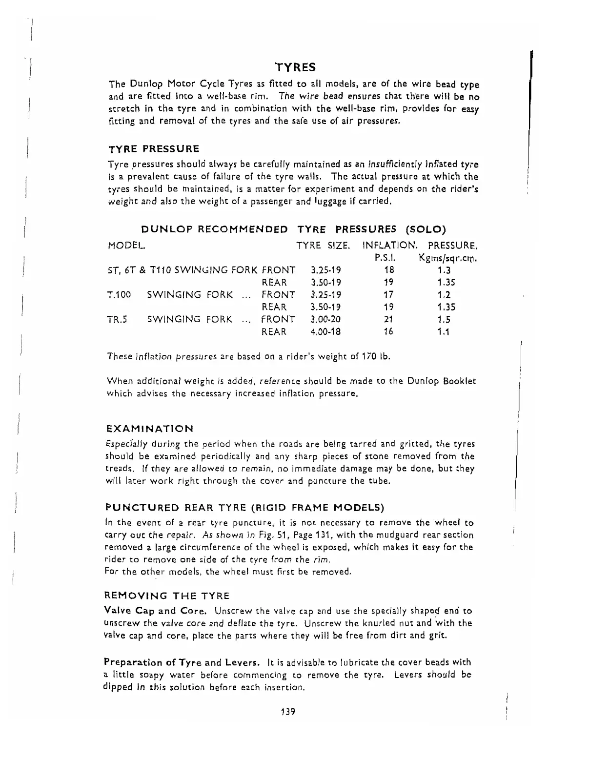 DUNLOP RECOMMENDED TYRE PRESSURES (SOLO)