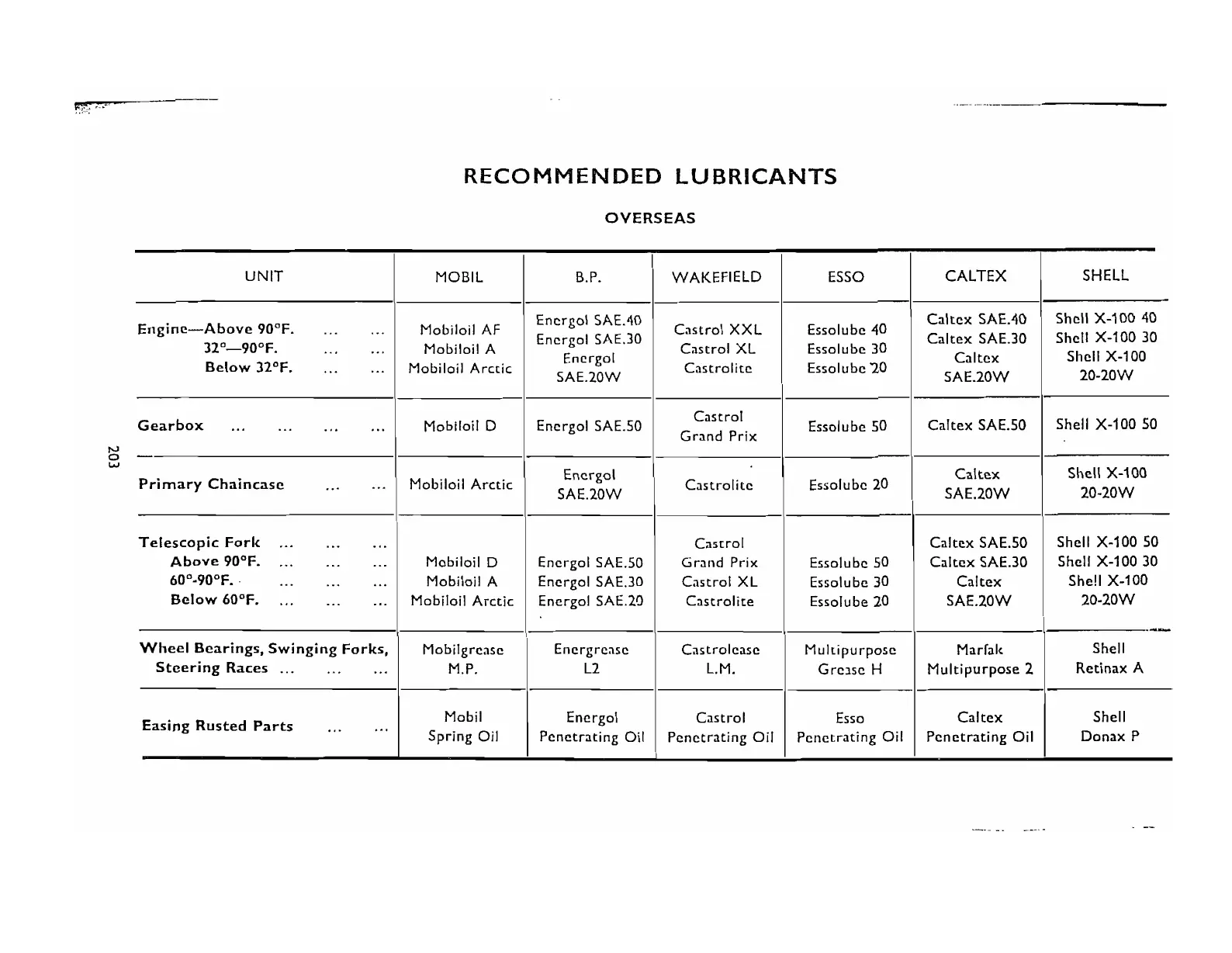 RECOMMENDED LUBRICANTS