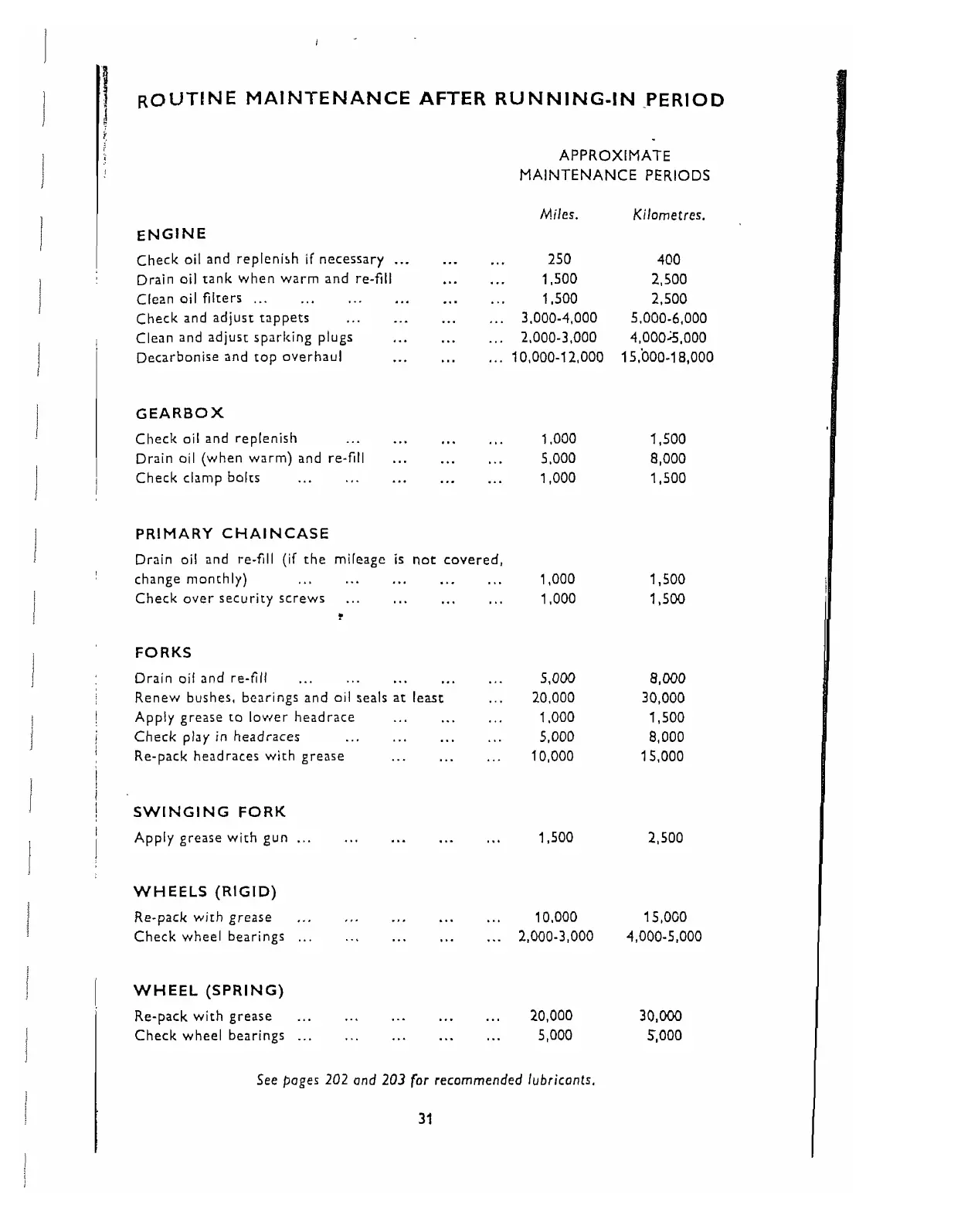 Triumph THUNDERBIRD 1953 - Routine Maintenance after Running-In Period