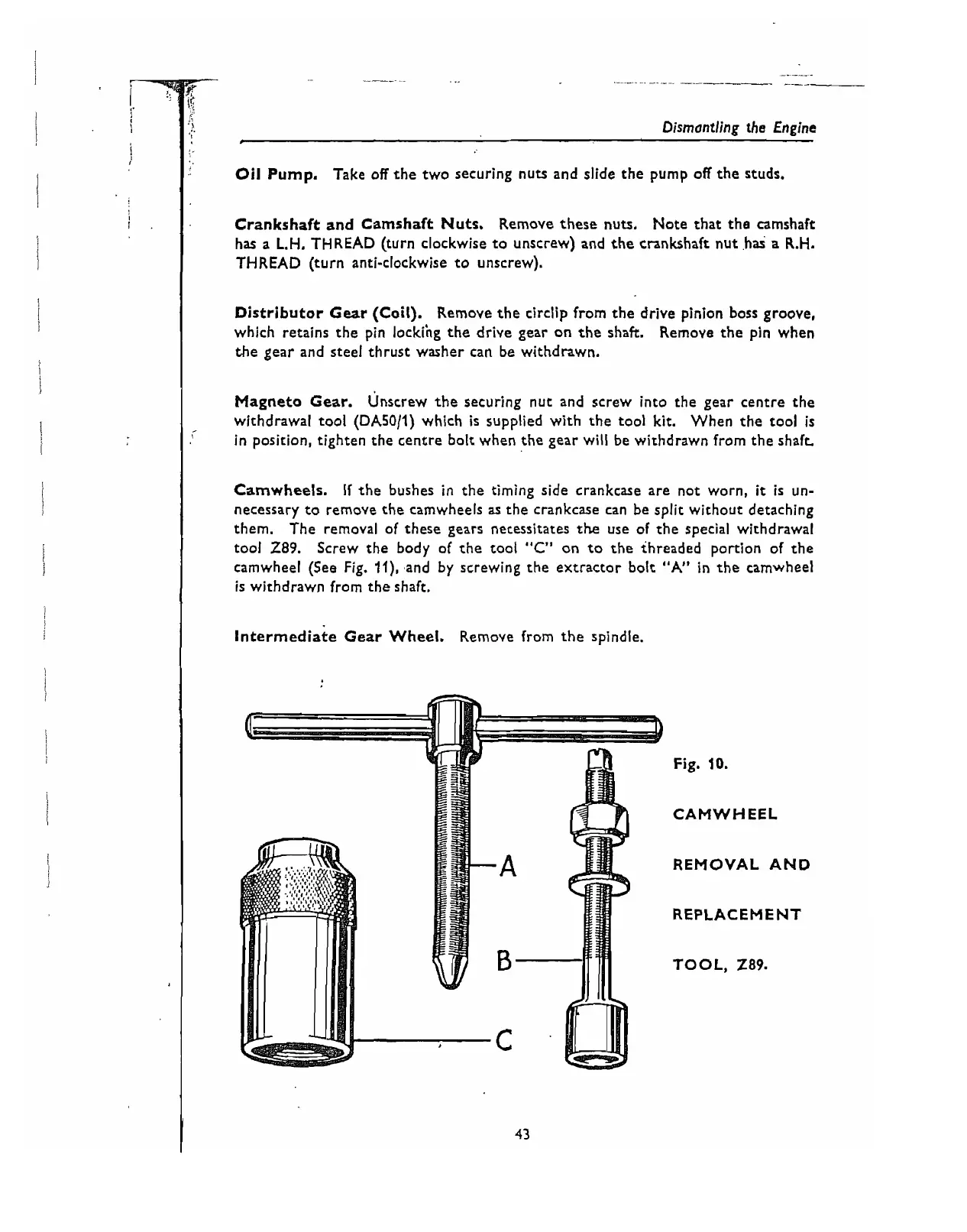Magneto Gear. unscrew the securing nut and screw into the gear centre the