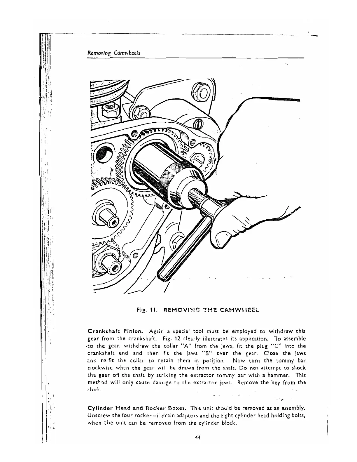 Triumph THUNDERBIRD 1953 - Removing the Camwheel; Crankshaft Pinion; Cylinder Head and Rocker Boxes