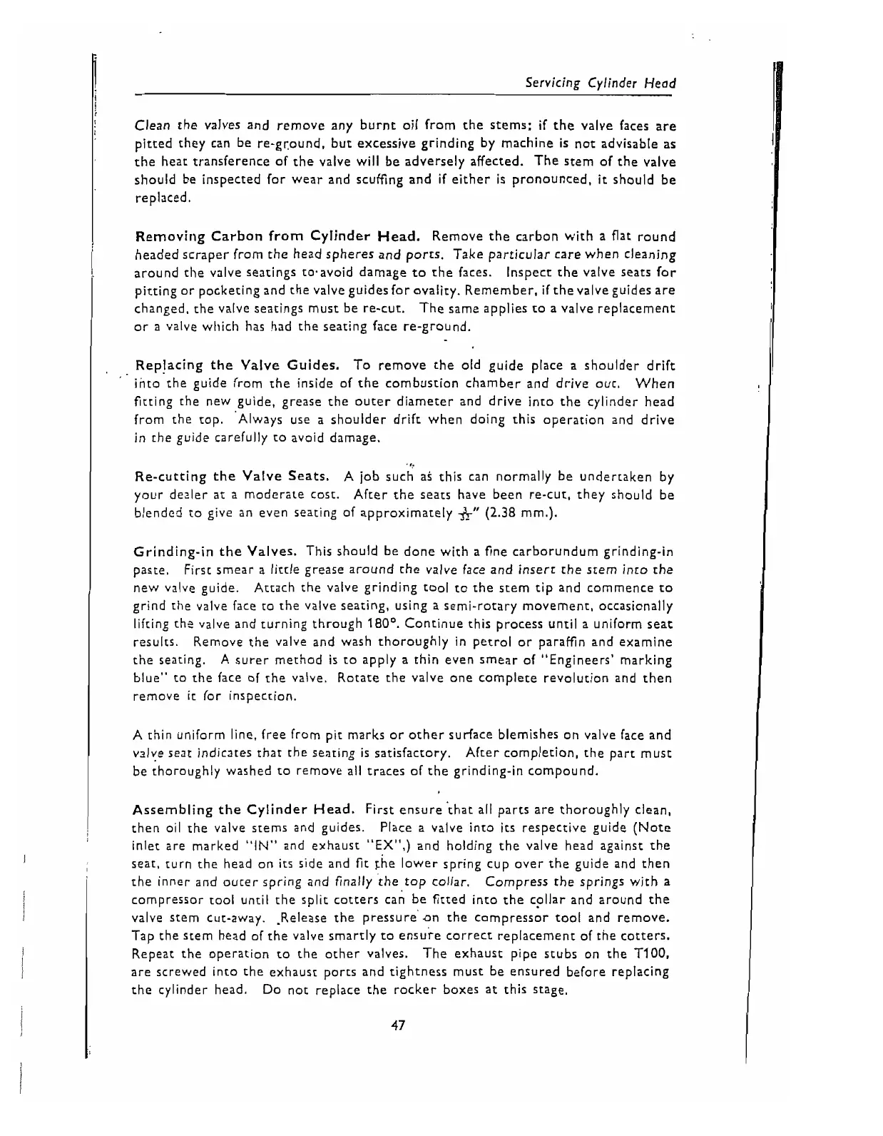 Triumph THUNDERBIRD 1953 - Removing Carbon from Cylinder Head; Replacing the Valve Guides; Re-Cutting the Valve Seats; Assembling the Cylinder Head