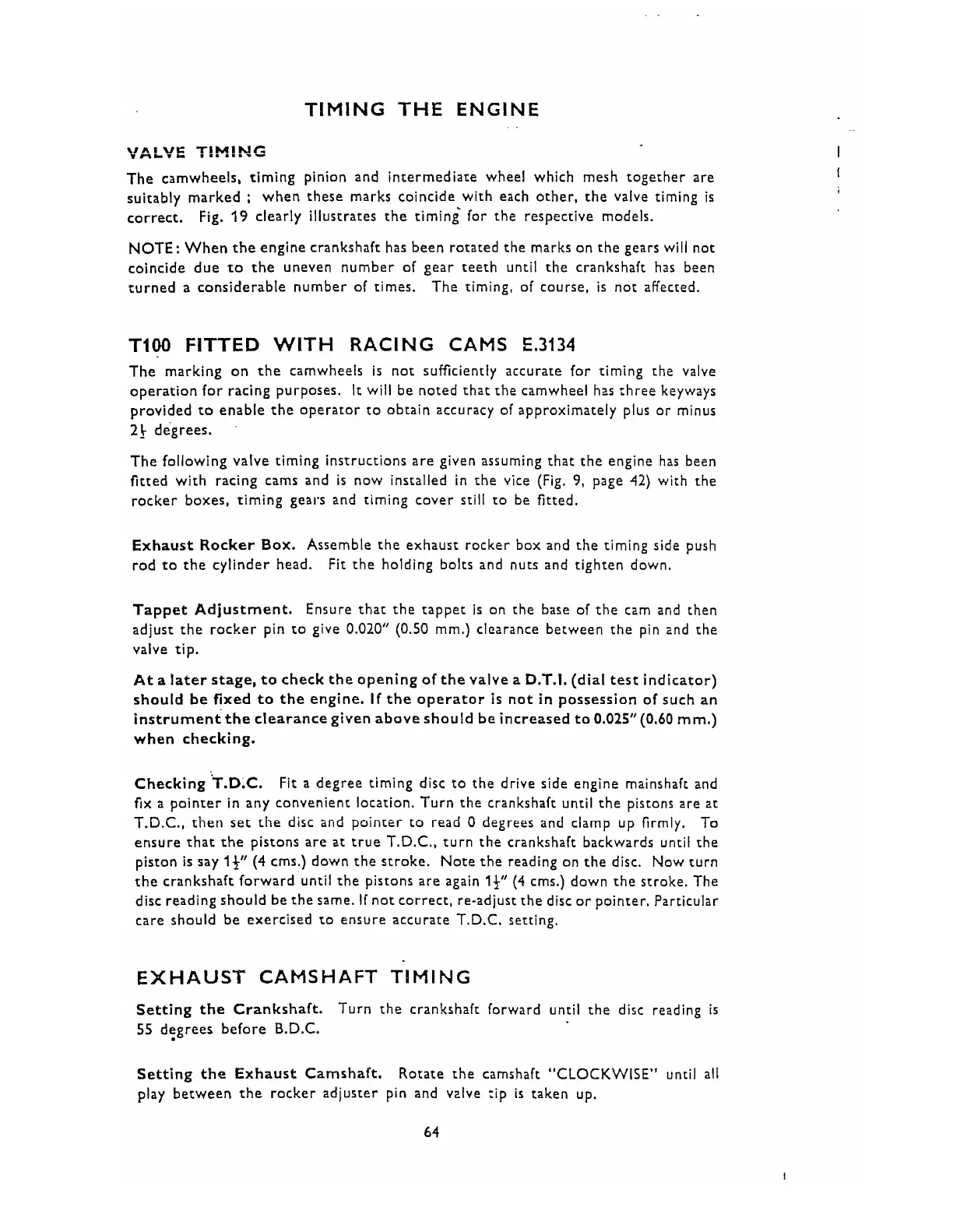 care should be exercised to ensure accurate T.D.C. setting.